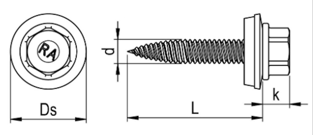 A 6,0 × 25mm-es bi-metál hatlapfejű önfúró lemezcsavarok